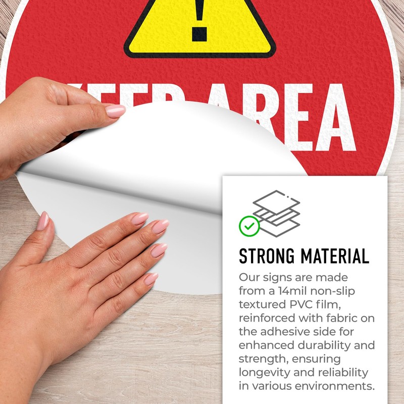 Keep Area Clear with Graphic 10x10 inches, Floor Decal Anti-Slip Adhesive Floor Sign Made in USA