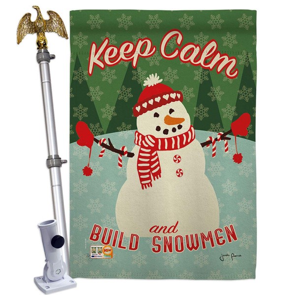Keep Calm Build Snowmen House Flag Eagle Set Wintertime Winter Wonderland Snowflake Snowman Ice Skate Season Snow Small Decorative Gift Yard Banner Made In USA 28 X 40