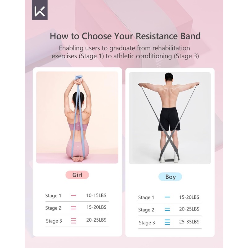 - Tailored for Every Fitness Stage: A distinct color to represent a specific resistance level: Pink for 10 lbs, Green for 20 lbs, and Gray for 25 lbs. This color-coded system allows for a gradual, tailored approach to your workouts, helping you progress at your own pace. Whether you're just starting out or advancing to more challenging exercises, our bands are designed to match your training needs, ensuring a professional and effective workout experience