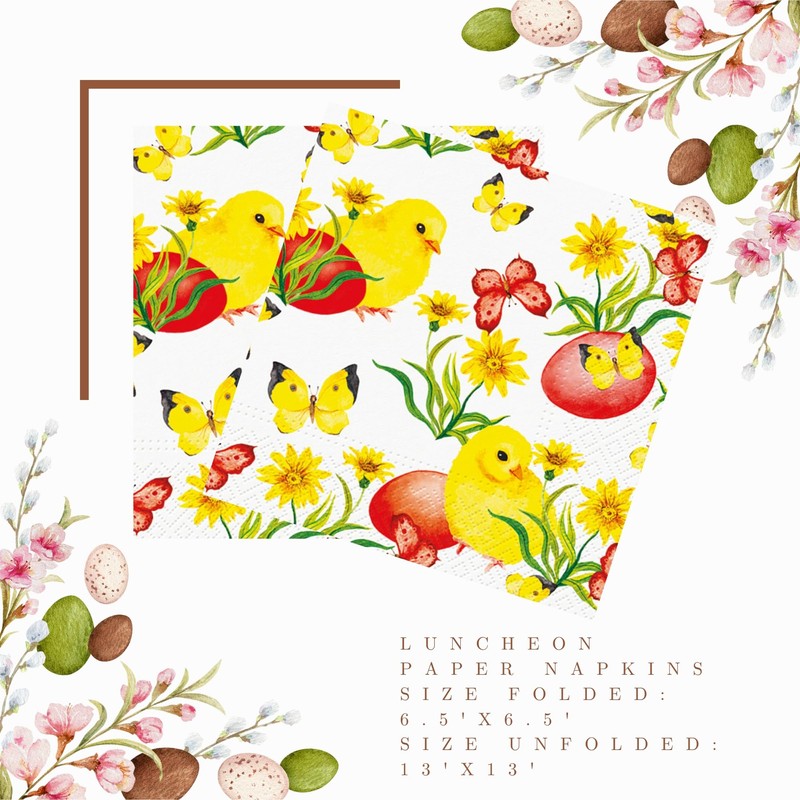 Keep Unique 20-ct 13x13 Easter Chickens Paper Luncheon Decoupage Napkins, 3-Ply Servilletas Printed Easter Chicken Cocktail Napkin for Art, Dinner and Party, Disposable Napkins Decor