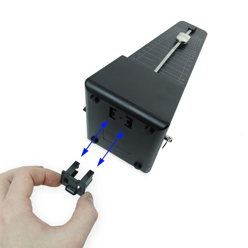 At the bottom of the mentronome is the transport lock that fixes the pendulum to avoid damage during transport. This fuse plug must be pulled out before using the metronome, so that the pendulum can swing freely.