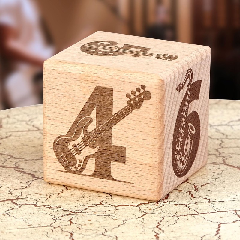 keepdrum Music Cube Rock and Roll Gift Idea Wooden Cube with Music Motifs 8 x 8 x 8 cm