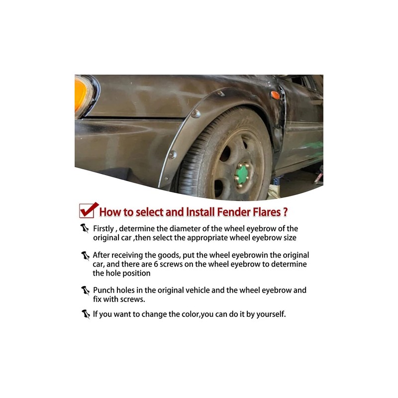 You can paint the color or stick the film on the surface of fender flare for matching with the vehicle’s color.