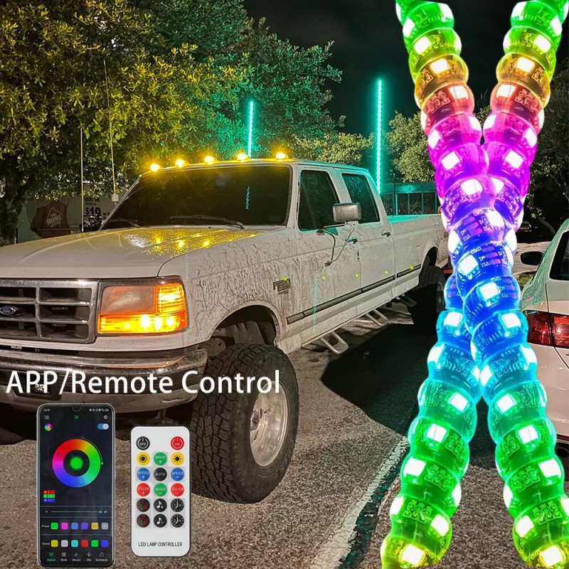 KEEPDSGN For Ford F150 F250 F-350 Pair 3FT RGB LED Whip Lights Bluetooth Remote Control