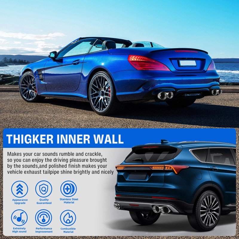 Stylish & pleasant-sounding: the thicker inner wall design make your car sounds rumble and crackle for a more powerful and unique sound while giving your car a new & sporty appeal