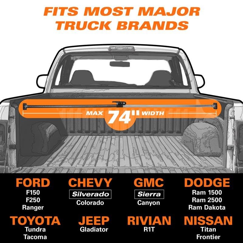 Keeper - Extended Ratcheting Cargo Bar - Adjustable 44 to 74 Inches, Secure Storage for SUVs, Full Sized Trucks, and Trunks