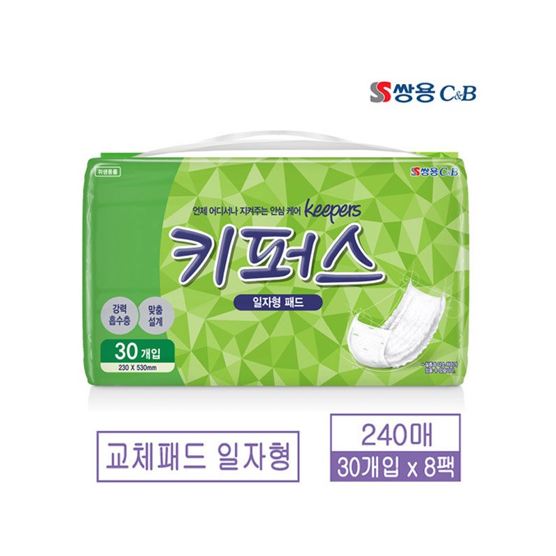 Keepers adult diaper straight replacement pads, 30 sheets, 8 pieces / 키퍼스 성인용기저귀 일자형 교체패드 30매 8개