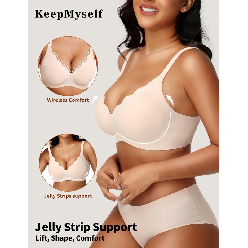 - "W" Jelly Strip, No Underwire Support Bra: Get revolutionary support from our innovative jelly bra. Its flexible W-shaped gel strip offers an adaptive lift—creating a natural, perky look for A-C cups. For fuller busts (D-DD+), it acts as a minimizer bra, providing soft containment that is ideal for women of all ages, including being a top choice among bras for older women seeking comfort.