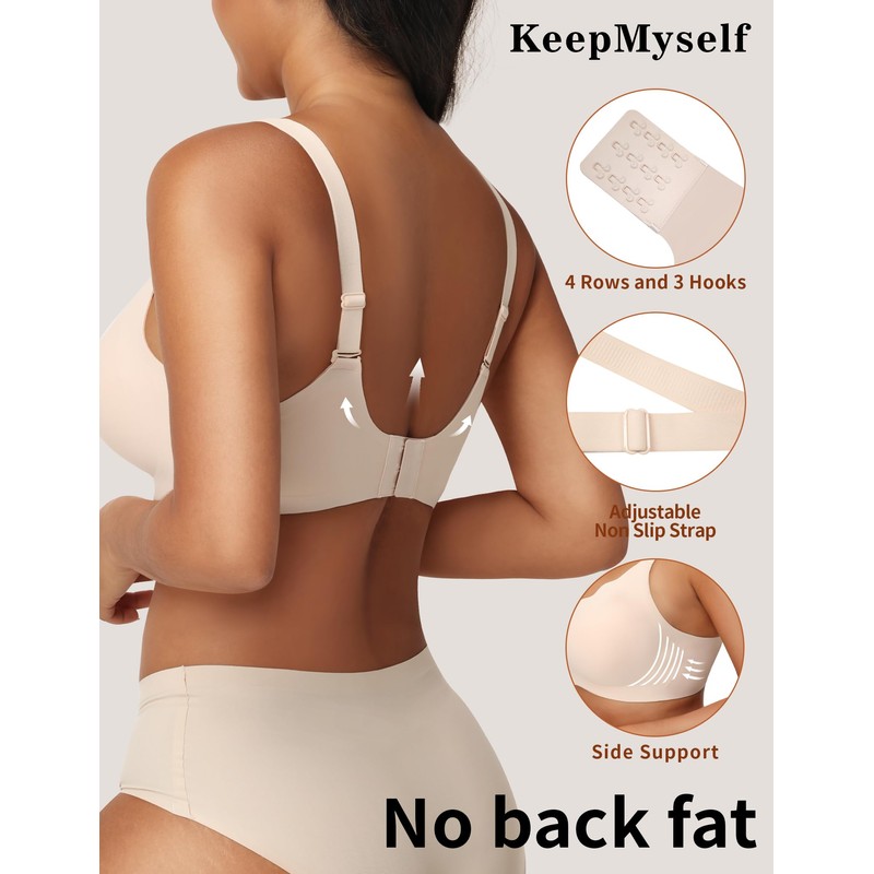 KeepMyself Plus Size Wireless Bra - Seamless No Underwire Tshirt Bralette Natural Support & Back Fat Smoothing for Older Women/Large Breasts, Comfort Removable Padding - Nude 3XL