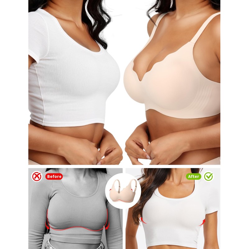- Elegant Scalloped V-Neck Fit: Our t-shirt bra features a chic scalloped V-neck that lays flat for a truly invisible look under clothing. Designed to flatter your natural shape, its wide wings and smooth back help conceal underarm bulge. This makes it an excellent choice among womens bras for seamless, everyday confidence from the office to a night out.