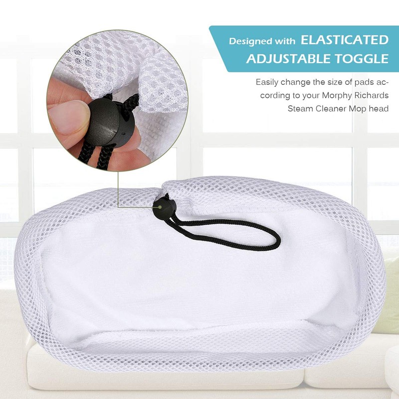 • Designed with elasticated adjustable toggle, easily change the size of pads according to your Morphy Richards Steam Cleaner Mop head