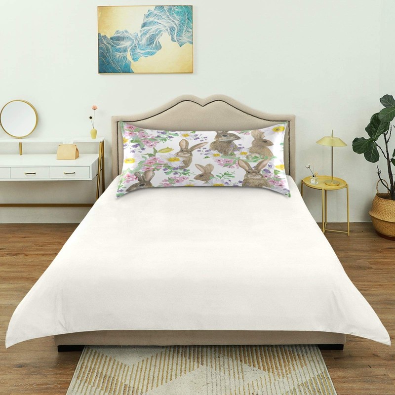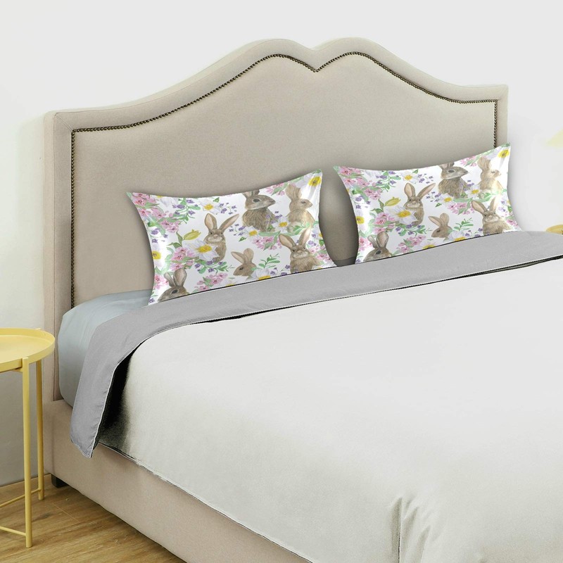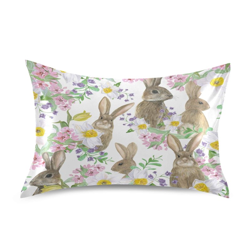 KEEPREAL Beautiful Flowers Bunny Satin Pillowcase for Hair and Skin Silk Pillowcase - Satin Pillow Covers with Envelope Closure, Standard Size(20x26 inches) - Easter Decoration