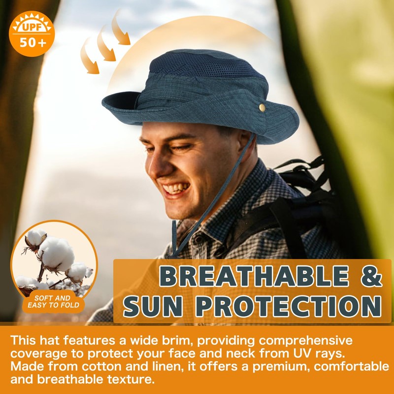 - 【Versatile Sun Hat for Every Adventure】 Ideal for outdoor use, this mens sun hat transitions effortlessly from the beach to the trail. Whether used as a fisherman hat, safari hat, or casual outdoor hat, it suits various activities.