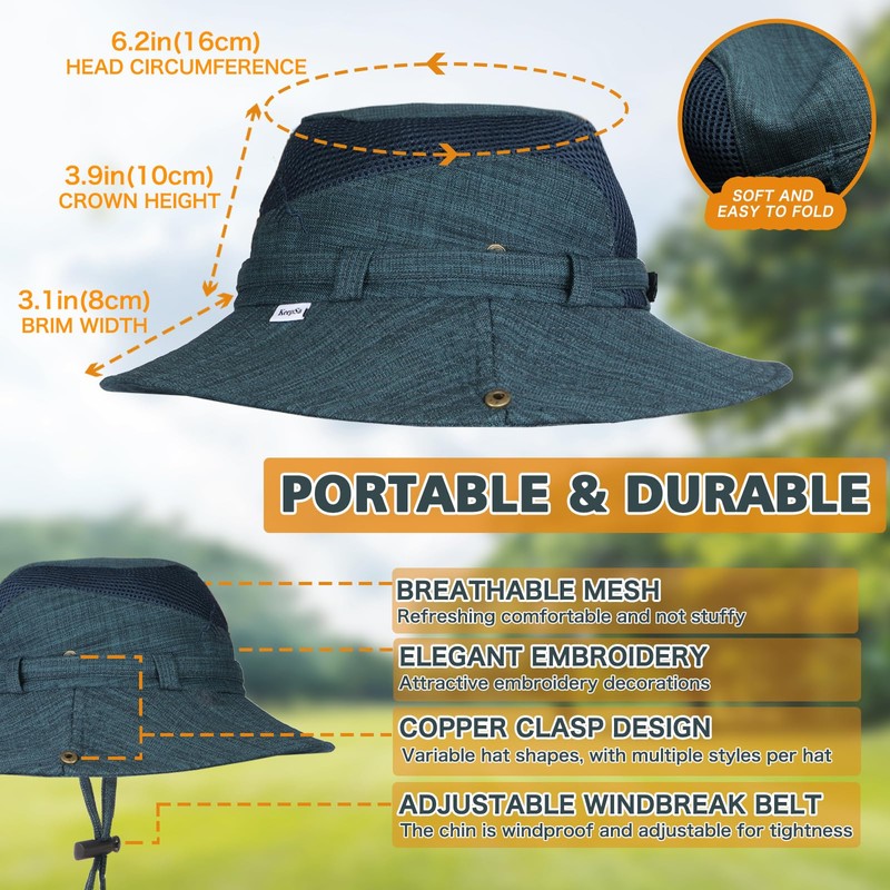 - 【Foldable & Breathable for Travel】 Designed as a foldable sun hat, it packs easily into bags or pockets. Mesh panels ensure airflow, making it a great boonie hat, hiking hat for men, or jungle hat for all seasons.