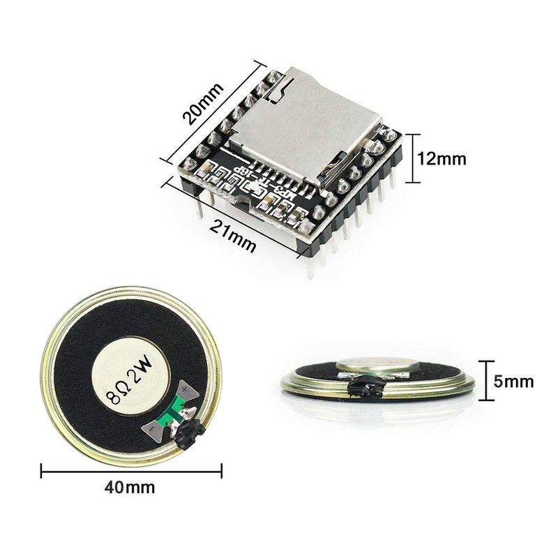 KeeYees DFPlayer Mini MP3 Player Module, Mini Audio Module, Sound Source Playback Module + Magnetic Speaker with Built-in Magnet, 8 Ohm, 2W Metal Shell