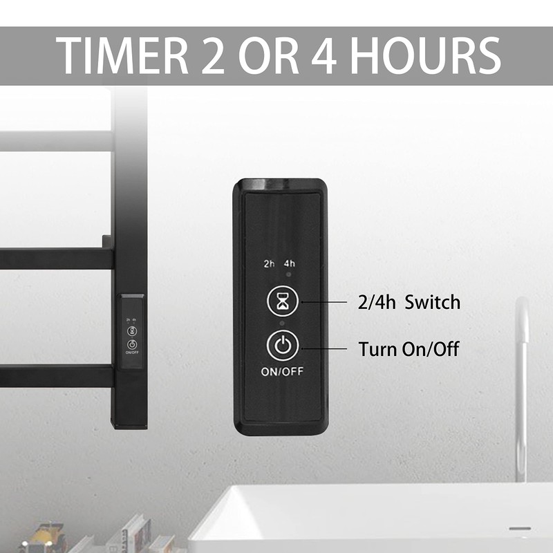 - Timer & LED Indicators: The towel warmer has a built-in timer of 2h or 4h with a visual LED indicator. Press the 2 or 4 hour buttons will dry your towels, and then it will automatically shut off itself when time is up.