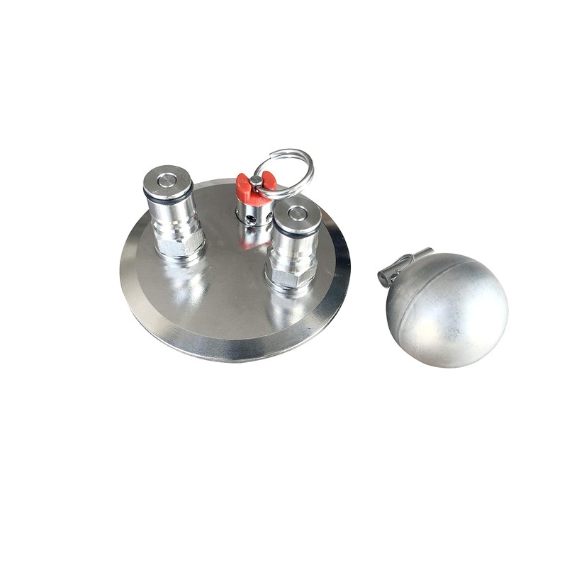 We design this convertible lid to turn any container with 3" tri clamp opening into a ball lock. This lid comes with beer stake, gas stake, pressure relief valve, simply attach the silicone hose to the end of the beer stake, then it works the same as a Cornelius ball keg. Also this lid is ideal for fermenting even under pressure, so you can use a spunding valve so you can use naturally carbonated carbonated during primary fermentation. The maximum pressure: 2.5 bar (36 psi). Please pressure resistant before removing the lid.