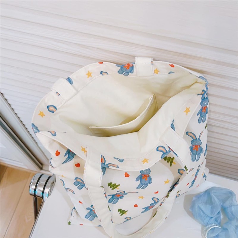 - Practical and Cute Tote Bag : This cotton tote bag have a big enough for all of your daily necessities. You can easily carry your laptop, cellphone, umbrella, wallet, card pack, power bank, perfume, makeups, paper handkerchief and so on.