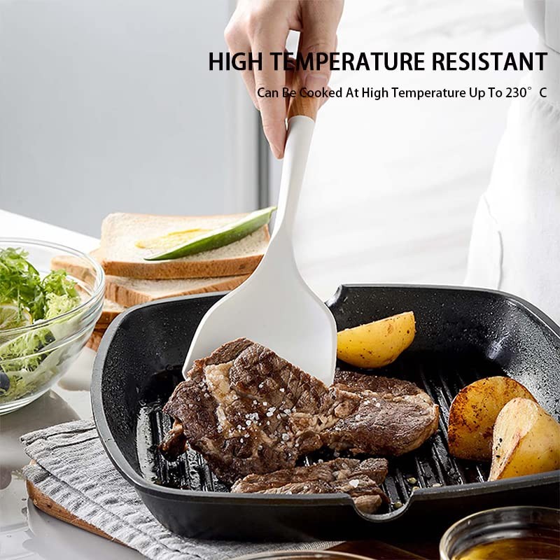 - Excellent durability: This cooking appliance is made of different materials: high-quality solid wood and high-quality silica gel (food grade silica gel, high temperature resistant). It does not rust, crack or bend, and is not easy to melt.