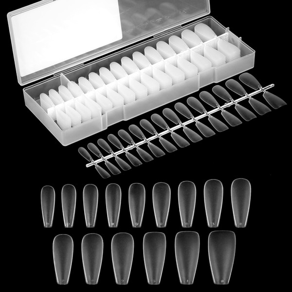 Keilend Nail Tips, Ballerina, 300 Pieces, 14 Sizes, Clear, Long, Matte, Ultra Thin, Half Tip, Long Tip, Sanded, DIY Nail, Beginner, Includes Storage Box