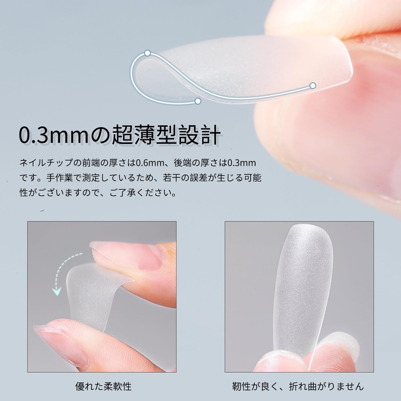 - Transparent Matte Long Nail Tip: Ballerina clear nail tip that shows your fingertips longer and gives a sophisticated impression. Featuring a self-claw-like fit, 0.2mm ultra-thin design allows seamless installation