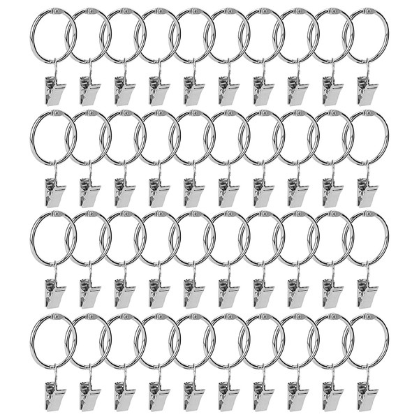 KEILEOHO 100 PCS 32mm Curtain Ring with Clip, Metal Curtain Clip with Hook, Curtain Pole Ring for Hanging Curtain Window Door