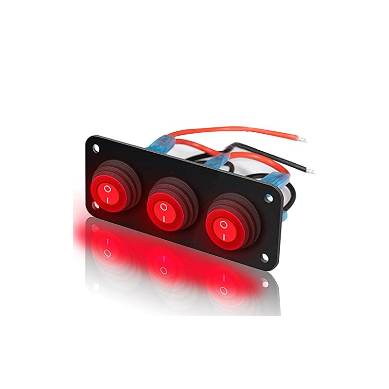 - [Latest styles] - This switch panel includes reverse polarity and automatic short-circuit protection to prevent potential danger, and wires are protected by waterproof rubber-cover and thicker rubber protection ring to prevent rupture. Rocker switch panel with pre-wired wiring harness for you to easily install in both 12V and 24V vehicles, marine boats.