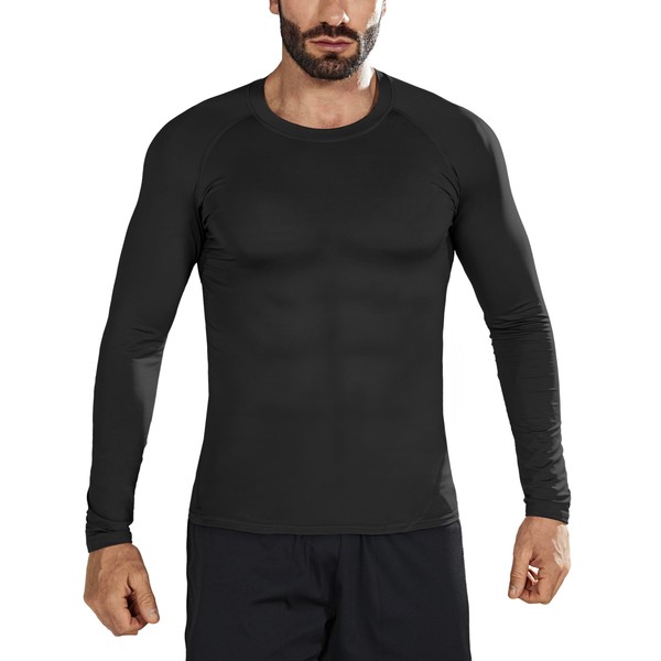 Keismimo Men's UPF 50+ Long Sleeve Compression Shirts UV/SPF Rash Guard Undershirt Base Layer Workout Top Z-Black