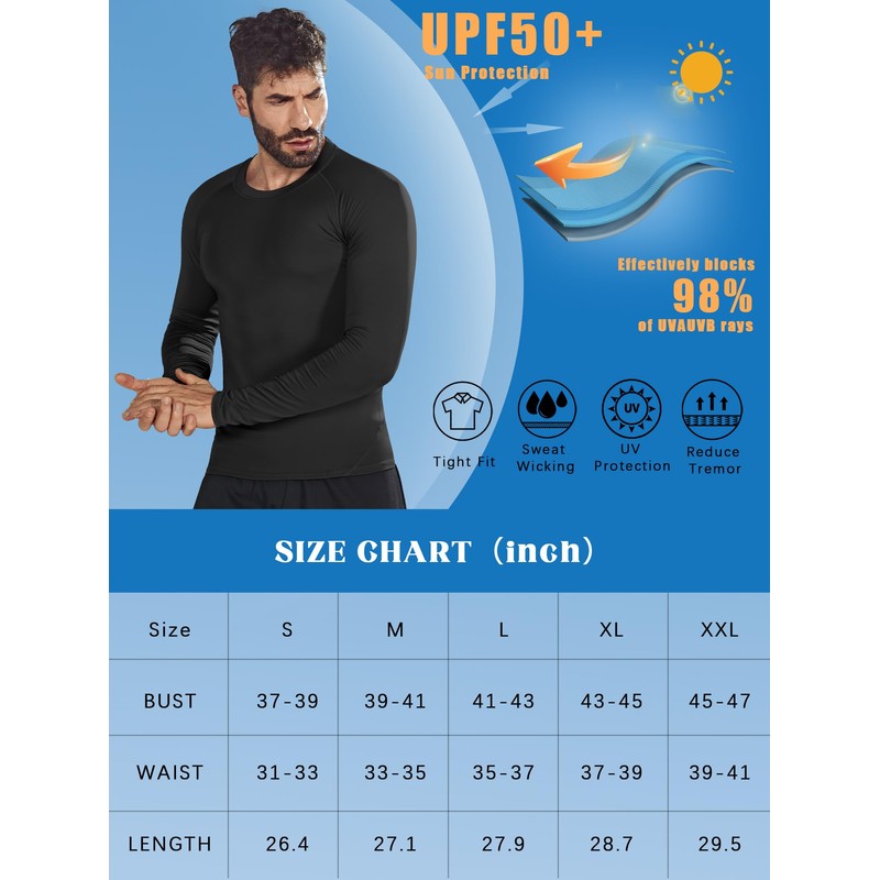 • 💪Powerful Compression-Long Sleeve compression shirts provide great support for your muscles during sports, increasing blood flow and contouring your muscles curves perfectly.It will help you reduce muscle fatigue, make exercise more comfortable.