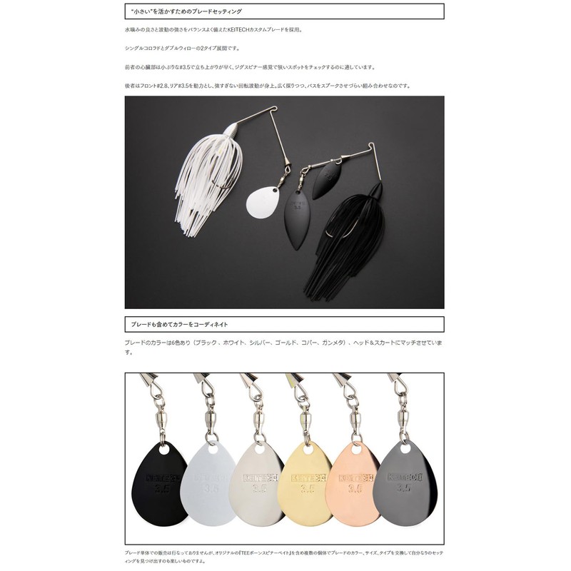 - Concept: (Baby TEE-BONE Spinnerbait SC) ... The spinnerbait is a compact Japanese standard that focuses on the basic performance required for search baits "flying, moving well and hanging well." The "Single Colorado(SC)" model is suitable for fast getting up and checking narrow spots with a jig spinner