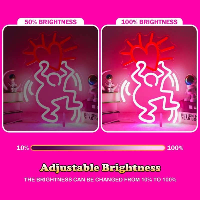 - Bright and Bold:The heart neon signs capture graffiti patterns by well-known artists, and the neon heart sign's bright light color makes it a standout in any room. Bright red and pink neon lights emit dazzling colors in the background, bringing an eye-catching and vibrant artistic atmosphere to your space