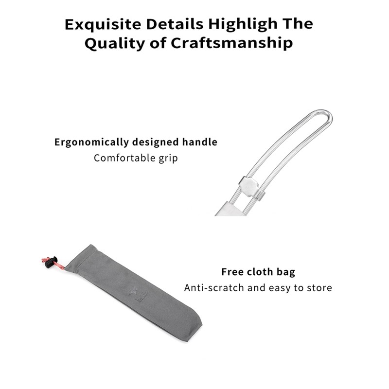 - Details: camping cutlery material: titanium; dimensions: 15.1 x 3.8 cm; weight: 17.5 g per piece; odourless surface