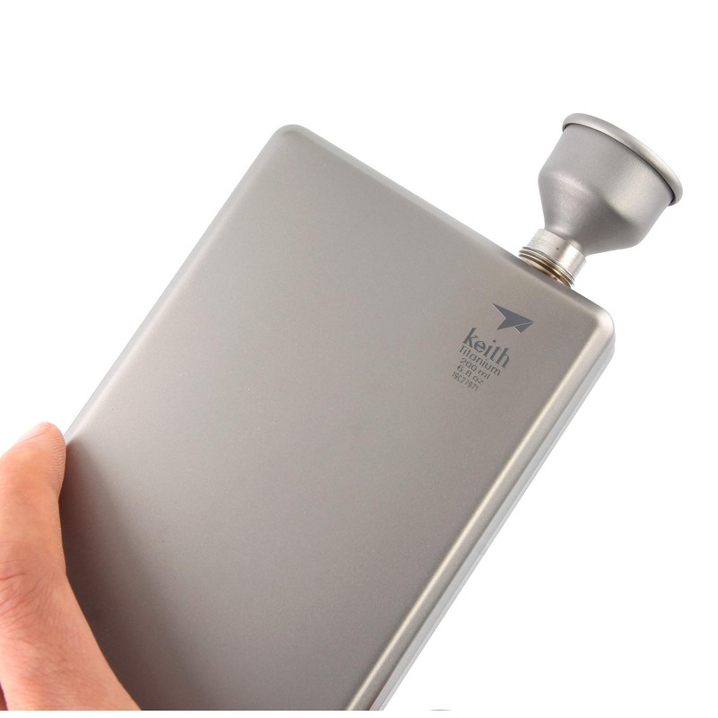 Keith Titanium Pocket Bottle with Funnel 120 ml / 200 ml (200 ml-Sliber[Ti9307])