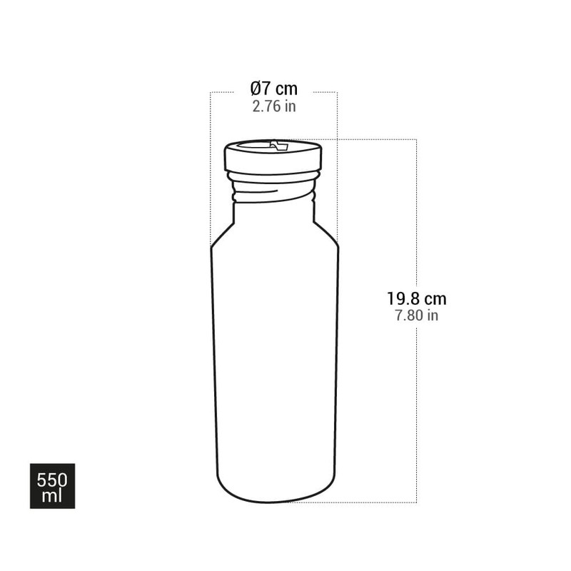 - Capacidad: 18.6 fl oz│550 ml ● Peso: 3.4 oz │ 96 g ● Dimensiones: 7.8 × 2.8 pulgadas │ 198 × 70 mm
