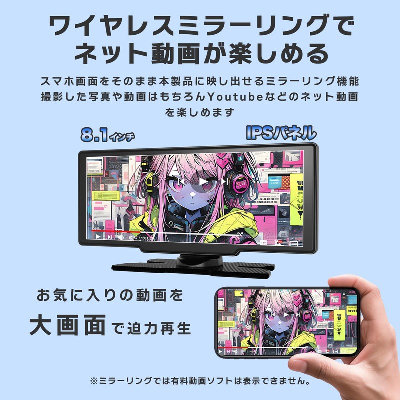 - 【Wireless Apple CarPlay/Android Auto】 You can easily connect your phone wirelessly without connecting a cable. 8.1 inch large screen IPS panel, wide viewing angle makes it easy to see and clear from any angle in your car. This allows you to see navigation and app display at a glance and provide excellent visibility. In addition, it supports the latest navigation apps (Google Maps, Apple Maps, and Yahoo car navigation system), so you can guide you routes to your destination in real time. You can also enjoy music using the music app on your smartphone (Spotify, Apple Music, YouTube Music, etc.)