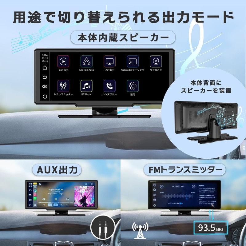 - Hands-Free Voice Control: Simply speak with Siri or Google Assistant and you can easily control the route guide on maps, make and receive calls, send/receive messages, play music, and more. You can always check the latest MAP in navigation applications (Google Maps, Apple Maps, Yahoo car navigation systems, etc), without the need for factory navigation updates. You can operate it by voice without hand while driving so you can focus more safely on your driving. In addition, it supports Bluetooth connection, AUX input, FM transmission function, so you can enjoy different audio output methods