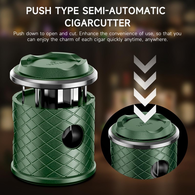 - Convenien Operation: Innovative push-type semi-automatic design, only need to gently press either v-cutters, straight cutters can be realized (for cigars up to 68 ring gauge). Suitable for a wide range of brands and sizes of cigars, it allows you to easily realize cigar cutting without any effort, enhancing the convenience of use and enabling you to enjoy every cigar quickly.