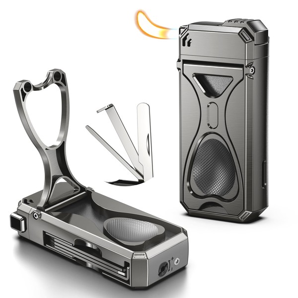 - Inflatable Butane Lighter: This lighter can be filled with butane repeatedly, there is a fire adjustment switch at the bottom, the electronic lighter makes it faster to light every time, the multi-functional hidden design is a good companion for traveling, the gift box packaging adds a touch of luxury and uniqueness, it's a good gift for Christmas, Thanksgiving, and anniversaries.