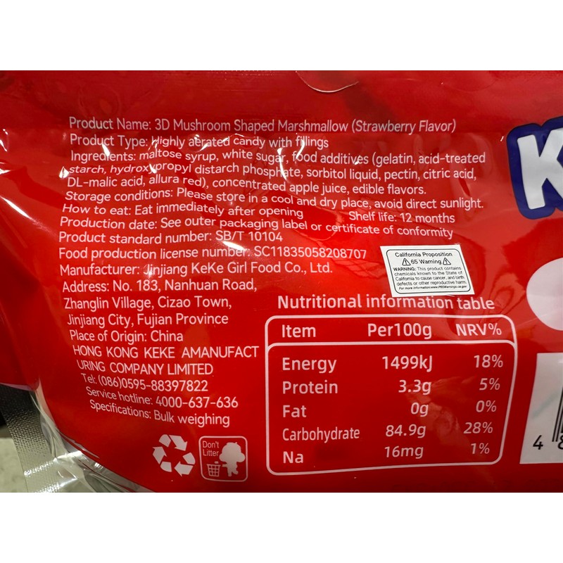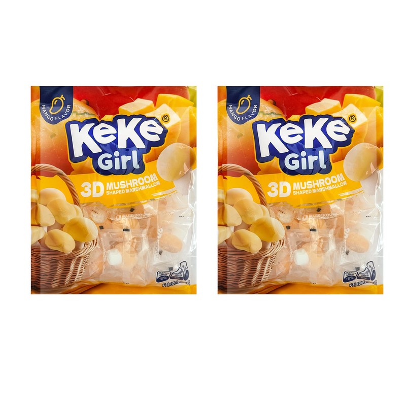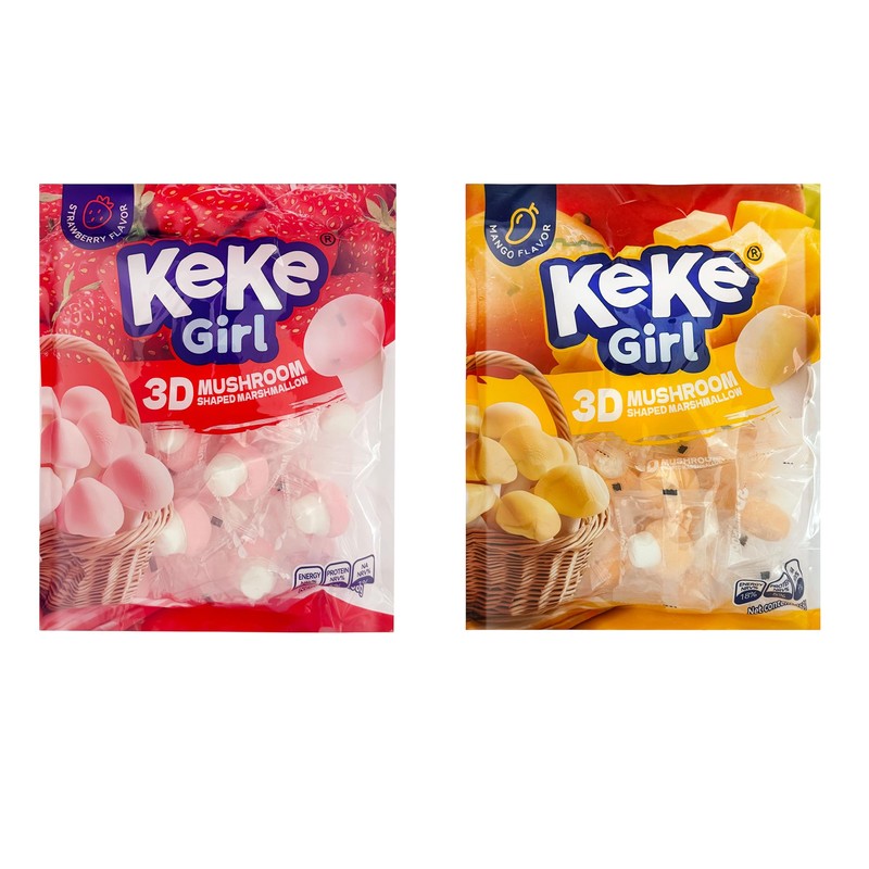 Keke Girl 3D Mushroom-Shaped Marshmallows, Individually Wrapped, 258g per Bag (2-Pack) – Strawberry & Mango Flavor, Perfect for Parties, Gifts, and Snacks (Strawberry (2-Pack))