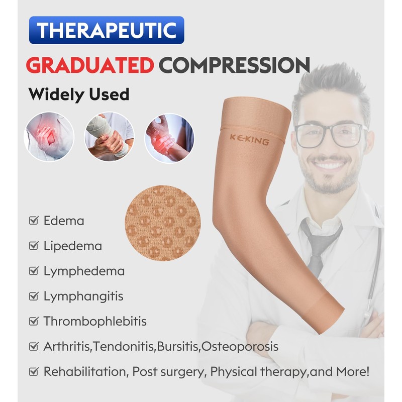 - ✅ 🔥【Therapeutic Compression】 - KEKING will bring you well-designed medical compression arm sleeve that provides 15-20 mmHg graduated compression, use for tendonitis elbow brace or pain in bicep, elbow or forearm, arthritis, osteoporosis and more; Rehabilitation, physical therapy; Ideal for wearing post-surgery and post-injury for muscle and joint support to reduce swelling, alleviating symptoms of joint pain, keep joint stability; You will notice the change if you’re wearing them a few hours.