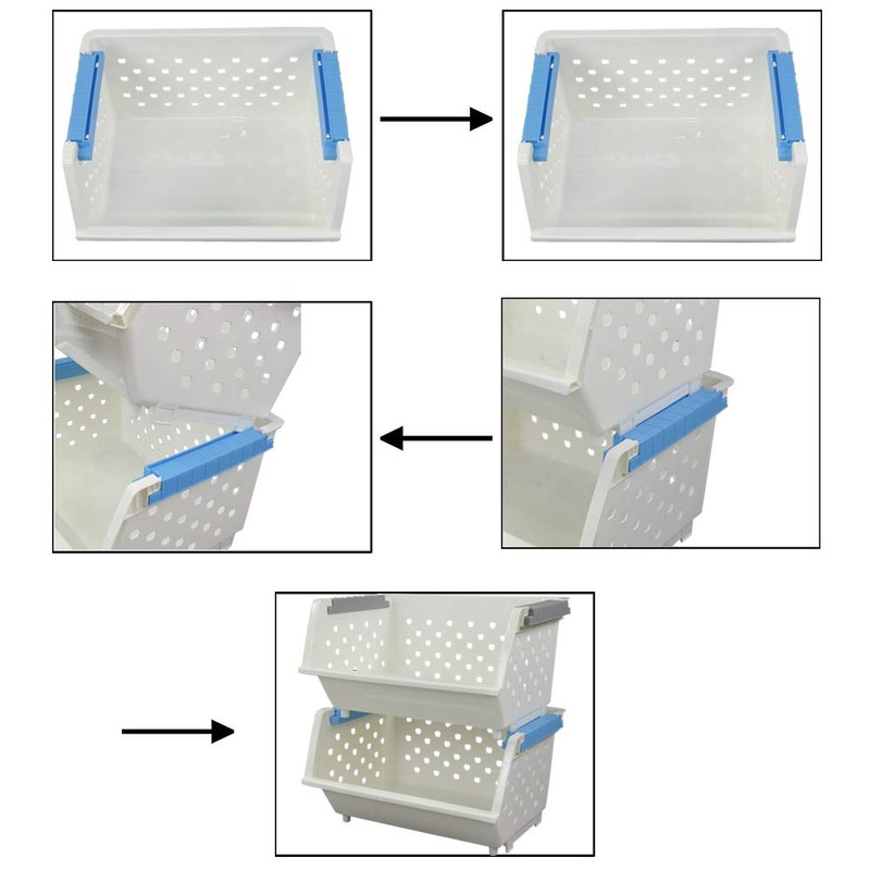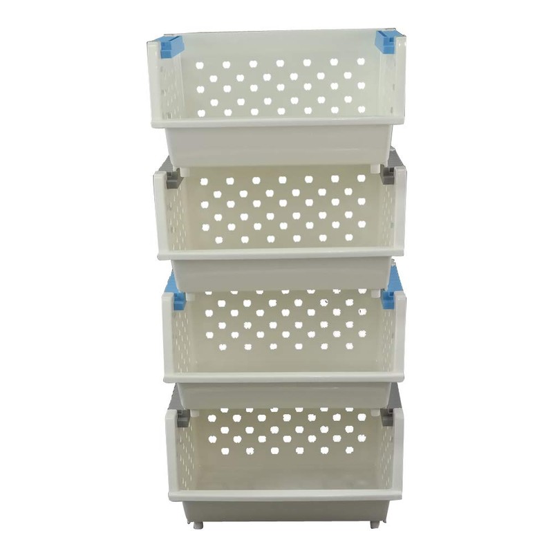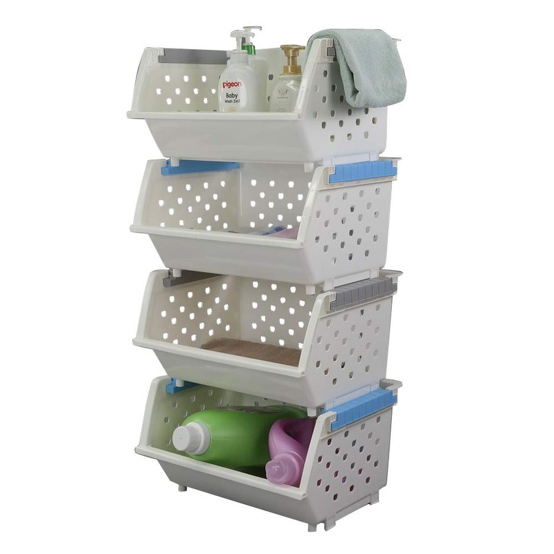 Kekow 4-Pack Plastic Large Stacking Organizer Basket, Stackable Storage Basket, White
