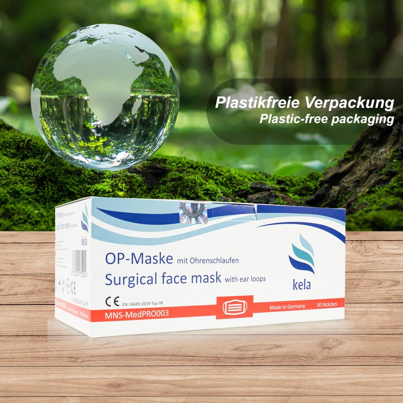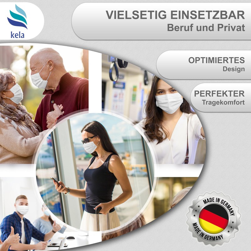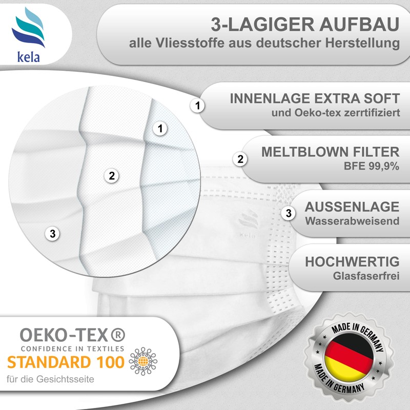 kela OP-Maske - 50x Medizinische Maske Weiß | 100% Made in Germany | OEKO-TEX Standard | Premium Atemschutz Mundschutz OP Maske | MNS Typ IIR Einwegmaske
