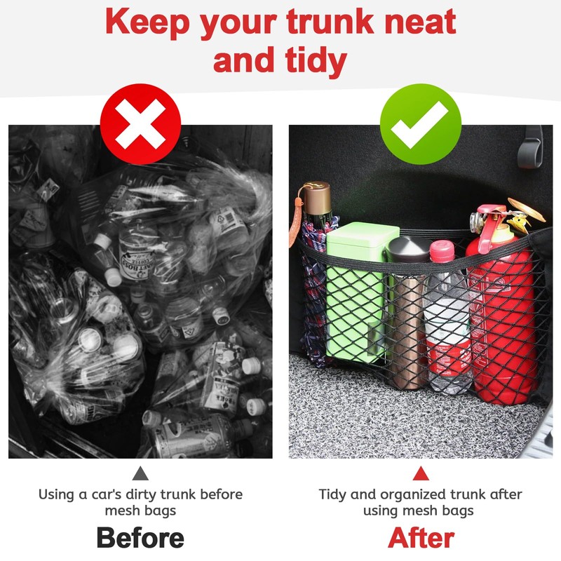 - Suitable for: boot net can also be used flexibly for storing seats in the car, storing the side windows, the backrest of the car or any other place with adhesive tape, even for different models such as caravans, trucks, to really "use a bag", so that every inch luggage space achieves the greatest value