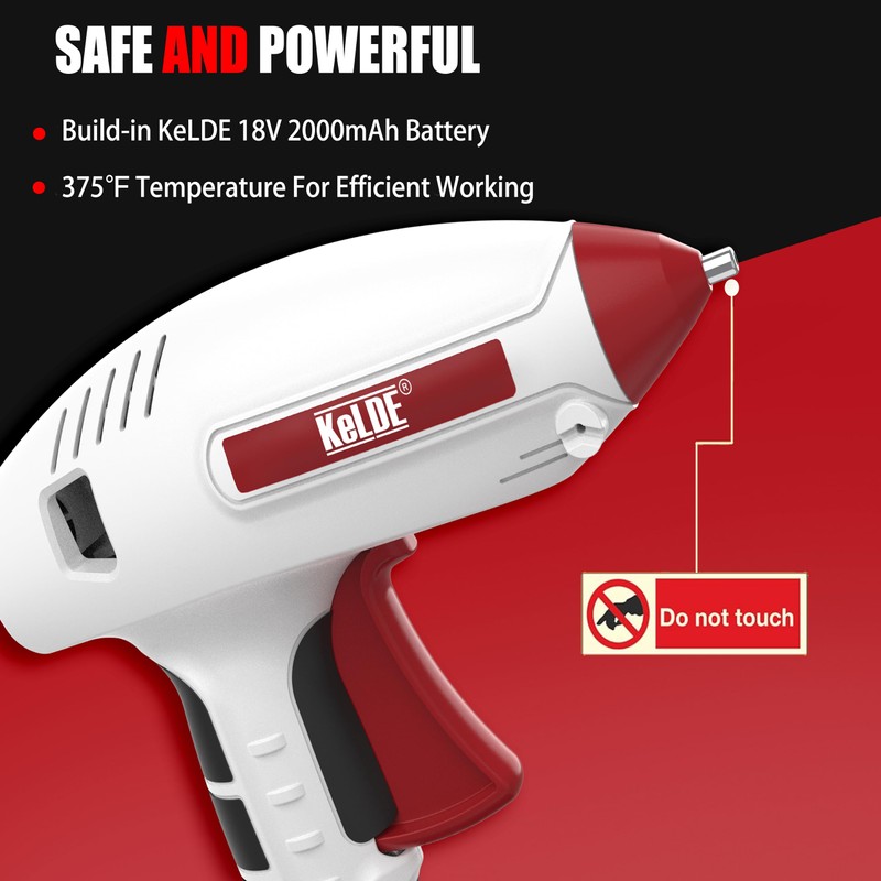 KeLDE Cordless Glue Gun Sets, 18V Li-ion Wireless Battery Hot Glue Gun Auto Power-off, Rechargeable with 20pcs Glue Sticks, Ideal for DIY Crafts & Quick Repairs