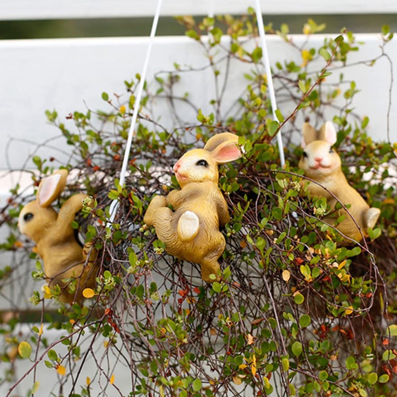 - HANGING & CARTOON DESIGN: Crafted of resin to greatly enhance its stability and durability for a long service life. Designed like 3 climbing rabbit shapes with vivid expression and erect ears to create cute and realistic appearances. Their legs naturally form hooks to allow for stable hanging on most types of flower pot's edge. Portable size and textured surface provide you excellent touch feeling to move around with ease, better satisfy your various needs