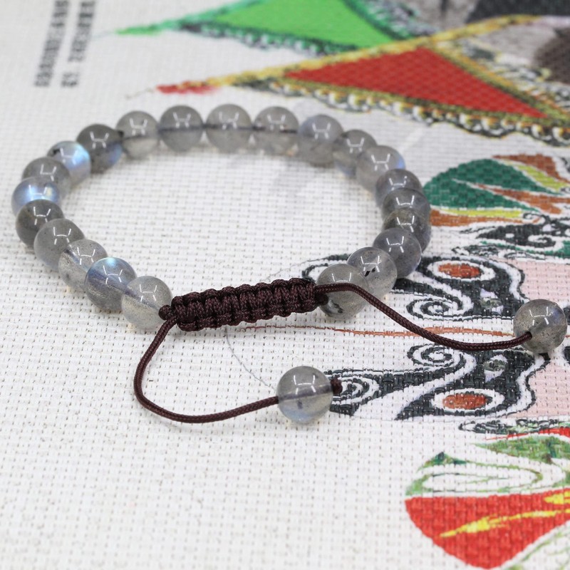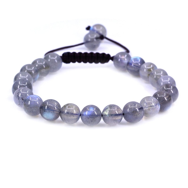 Keleny Natural Grey Labradorite Crystal 8mm Round Beads Adjustable Braided Macrame Tassels Bracelets Unisex