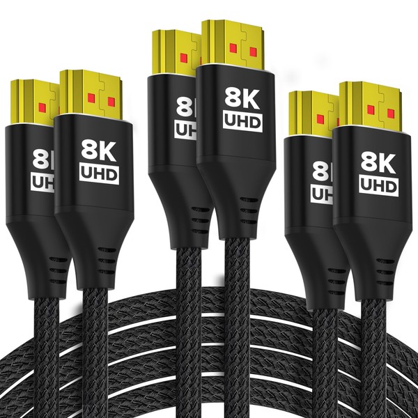 KELink 10K 8K 4K HDMI Cable 1FT 3-Pack, Ultra High Speed HDMI Braided Cord, Supports 4K/120Hz, 8K/60Hz, 48Gbps DTS:X, HDCP 2.2 & 2.3, HDR 10, HDMI 2.1 Cable