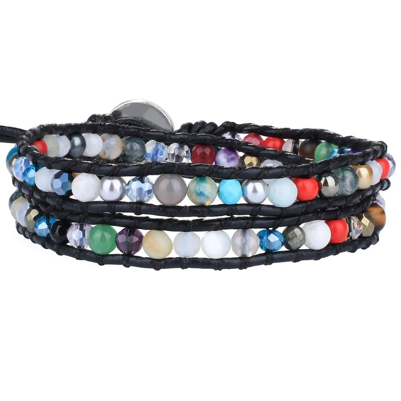 KELITCH 2 Wraps Bracelets Colorful Mix Crystal Natural Stone Beaded Bracelet Women Statement Bracelets Bangles (Colorful 15)