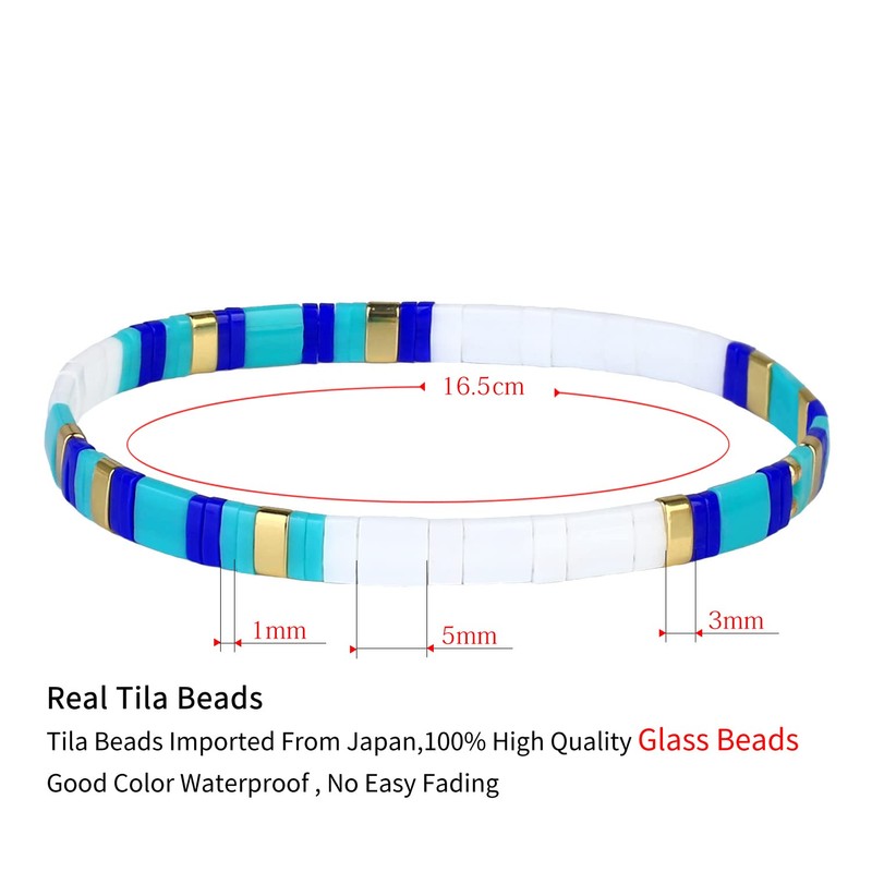 KELITCH Classic Link Bracelets Bangles Tila Beads Stretch Bracelets Summer Charm Bracelets For Women - 05E