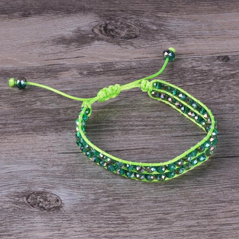 KELITCH Crystal Beaded Bracelets Double Layer Strand Bracelet Women Bangle Cuff